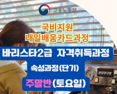 국민내일배움카드 > 자격증과정 [청주캠퍼스] 카페바리스타2급 속성과정(단기) 주말반(토요일) 고 용 2 4 |